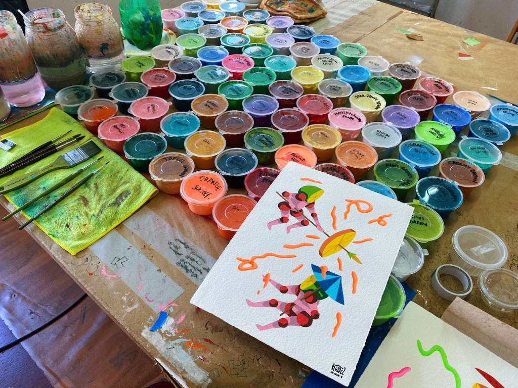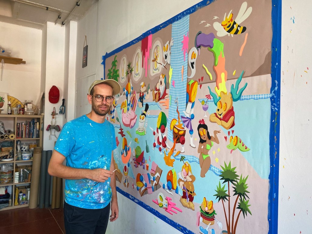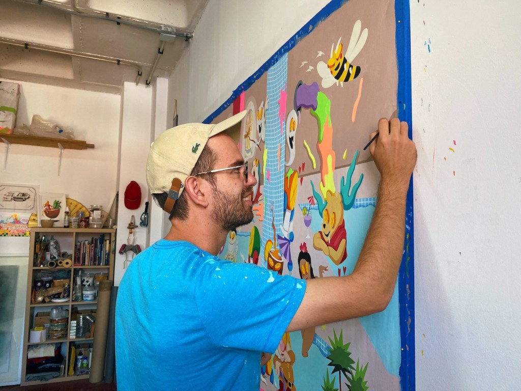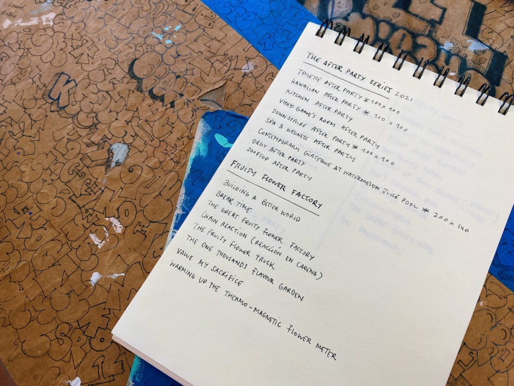 Lo que más disfruto del proceso artístico es precisamente eso » el proceso » cuando desarrollo una obra desde el principio hasta el final y la veo cambiar, crecer, avivarse a través de los colores, esa es sin duda la parte que más disfruto. Una vez la obra está hecha ya se acabó la diversión.