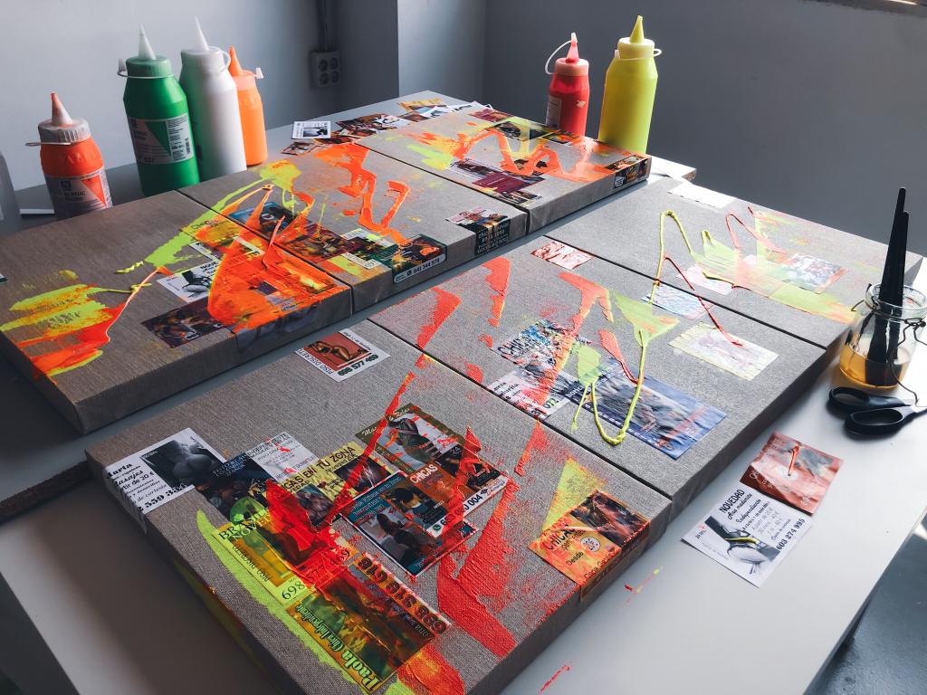 Yo trabajo por series o proyectos, ya sea porque estoy haciendo una residencia artística, comisión de mural, preparando una exhibición y/o explorando temáticas nuevas en mi estudio.